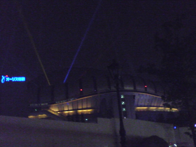 大阪最終日、外に出ると、ドームからは七色の光線が出ておりました。
